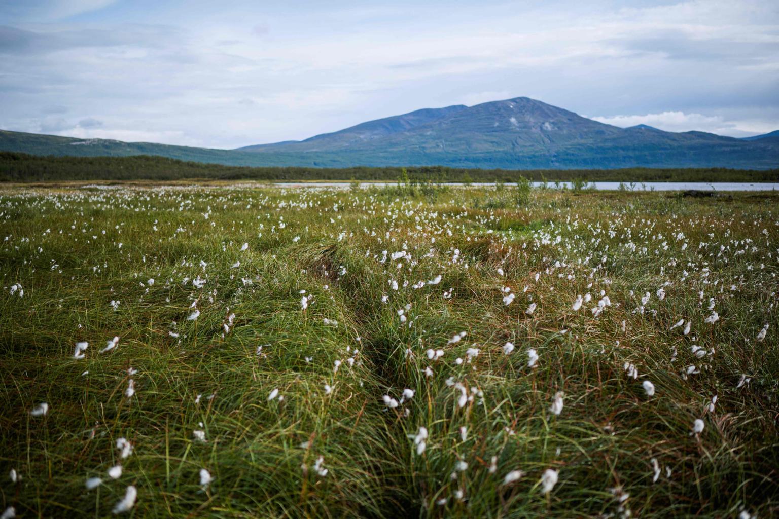 On the peatland, covered in tufts of grass and shrubs dotted with blue and orange berries and little white flowers, looms a moonlander-like pod hinting at this far-flung site's scientific significance.