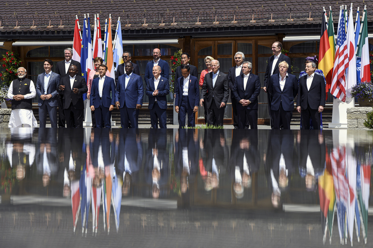 World leaders gather for a group photo at the G7 summit meeting in Kruen, Germany, on June 27, 2022.