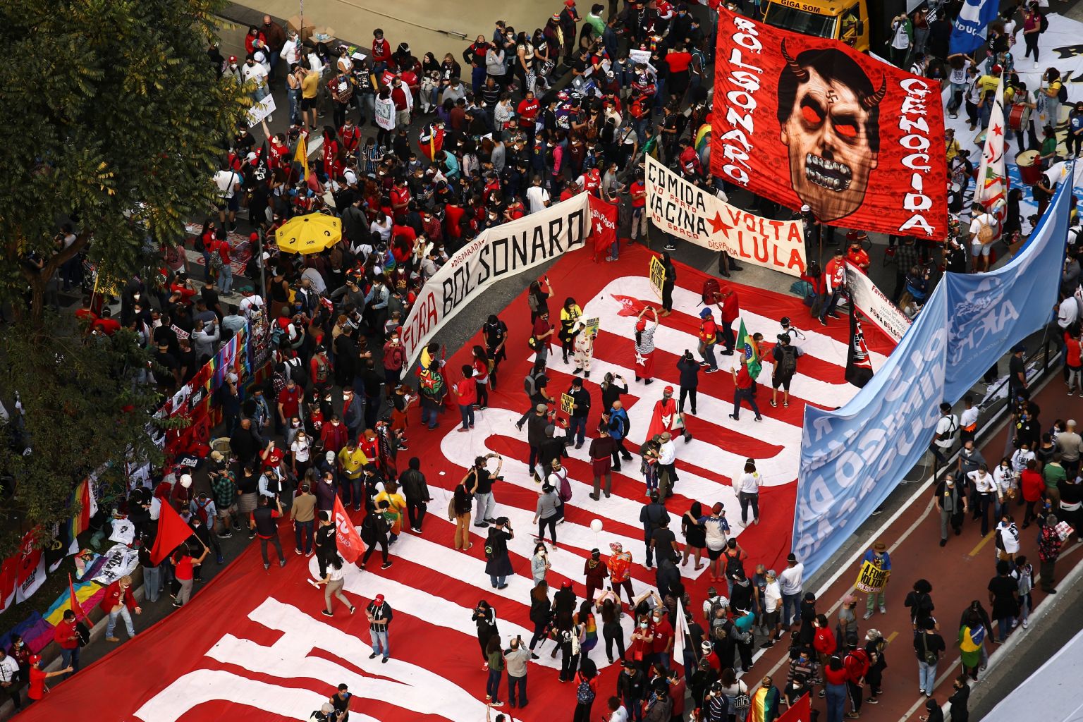 There were rallies as well in the cities of Sao Paulo, Belem, Recife and Maceio, with protesters carrying signs saying things like "Genocidal Bolsonaro," "Impeachment Already" and "Yes to the Vaccines."