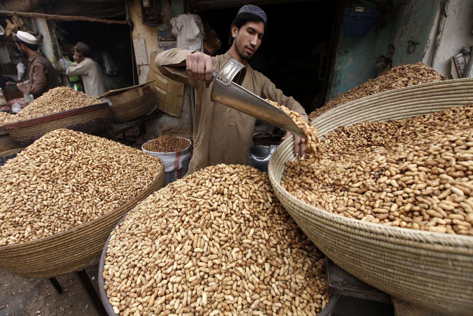 A Pakistani vendor sells peanuts by the road in Peshawar on Jan 2, 2017.