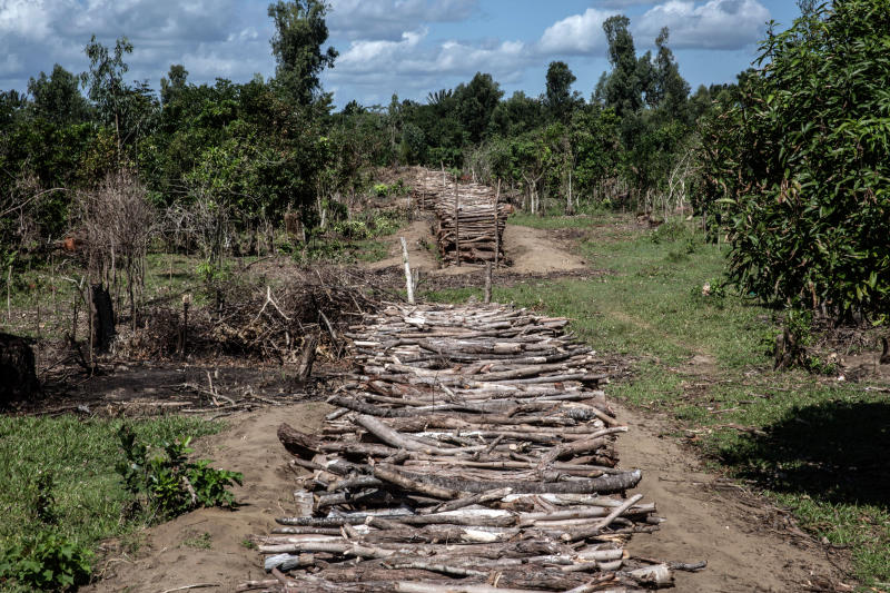 Stacks of hardwood near Antalaha, in Madagascar's northeastern Sava region, on May 30, 2018. Madagascar lost 2 per cent of its entire rainforest in 2018.