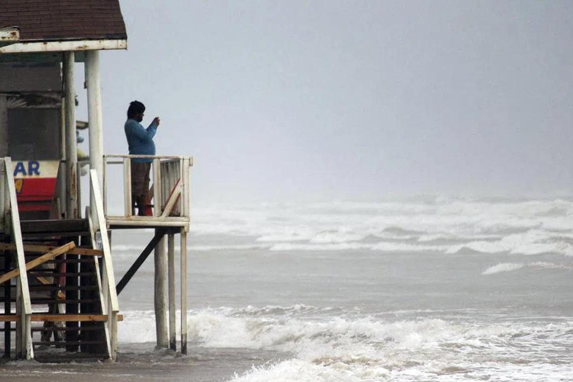 Along the US Gulf coast, including parts of Texas and Louisiana, videos posted on social media showed some flooding in coastal towns and waves smashing into sea walls.