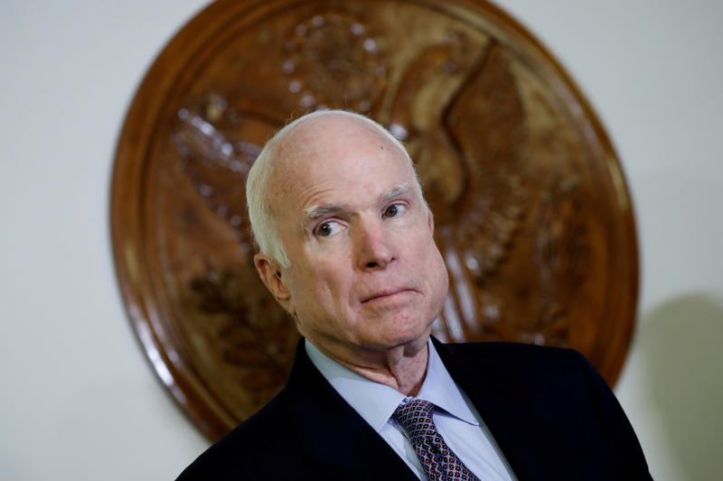 Senator John McCain looks on at a press conference about the National Defense Authorization Act in Washington, US, on Oct 25, 2017.
