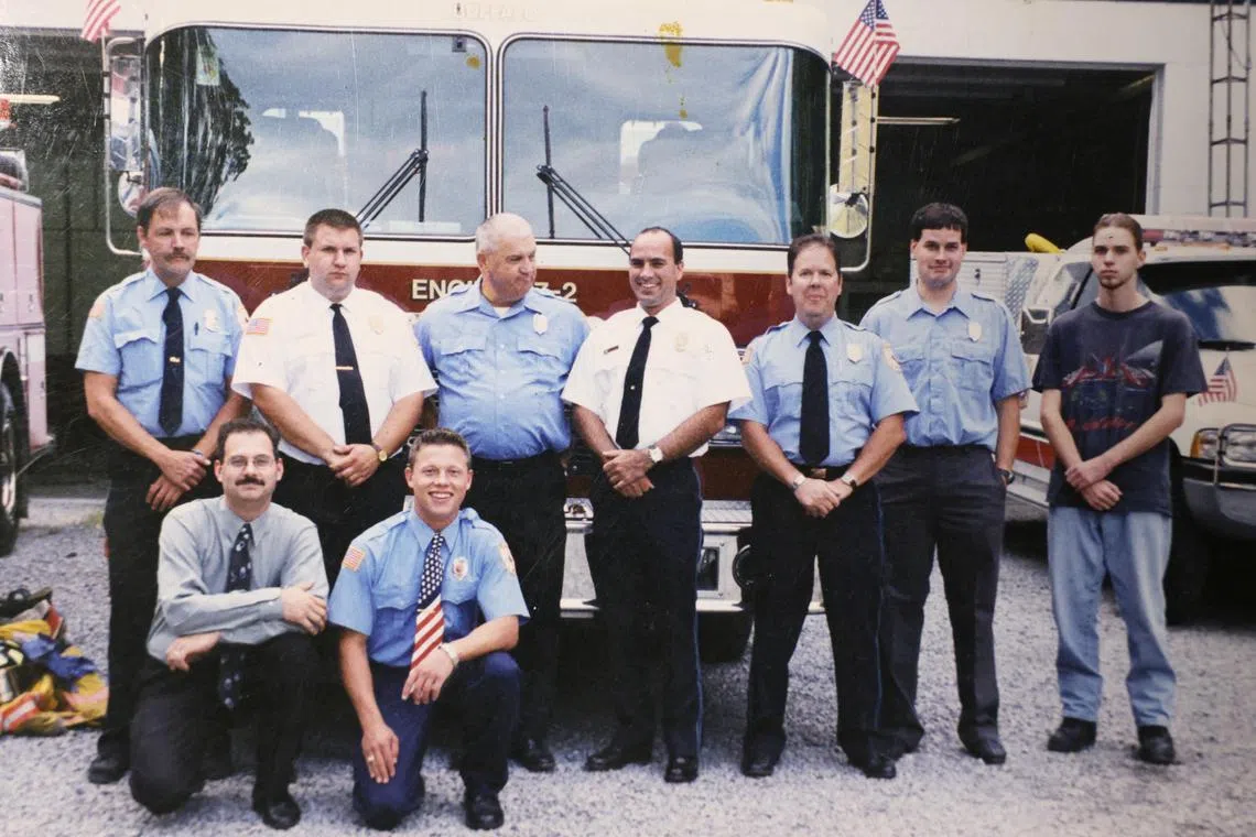 Volunteer firefighter Corey Comperatore (top row, fourth from left) in an undated photo of Buffalo Township Fire Company 27.