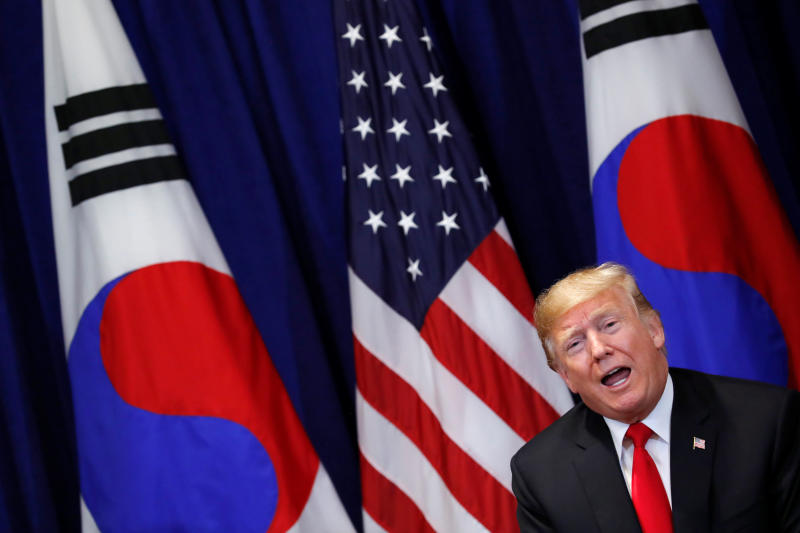 US President Donald Trump speaks to the news media during a bilateral meeting with South Korean President Moon Jae-in on the sidelines of the 73rd United Nations General Assembly in New York, US, on Sept 24, 2018.