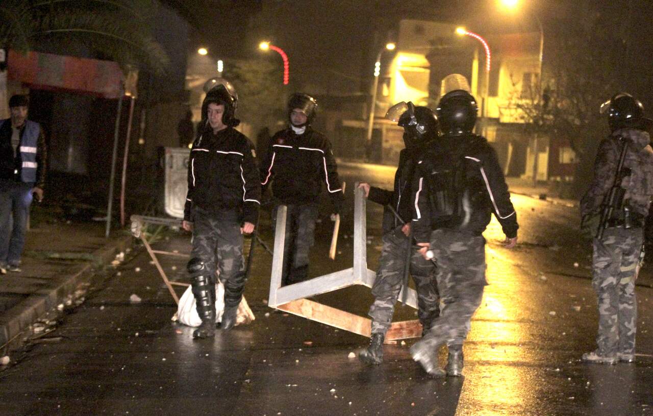 Tunisian security forces gathering during clashes with demonstrators, in Siliana, Tunisia, on Jan 16, 2021.