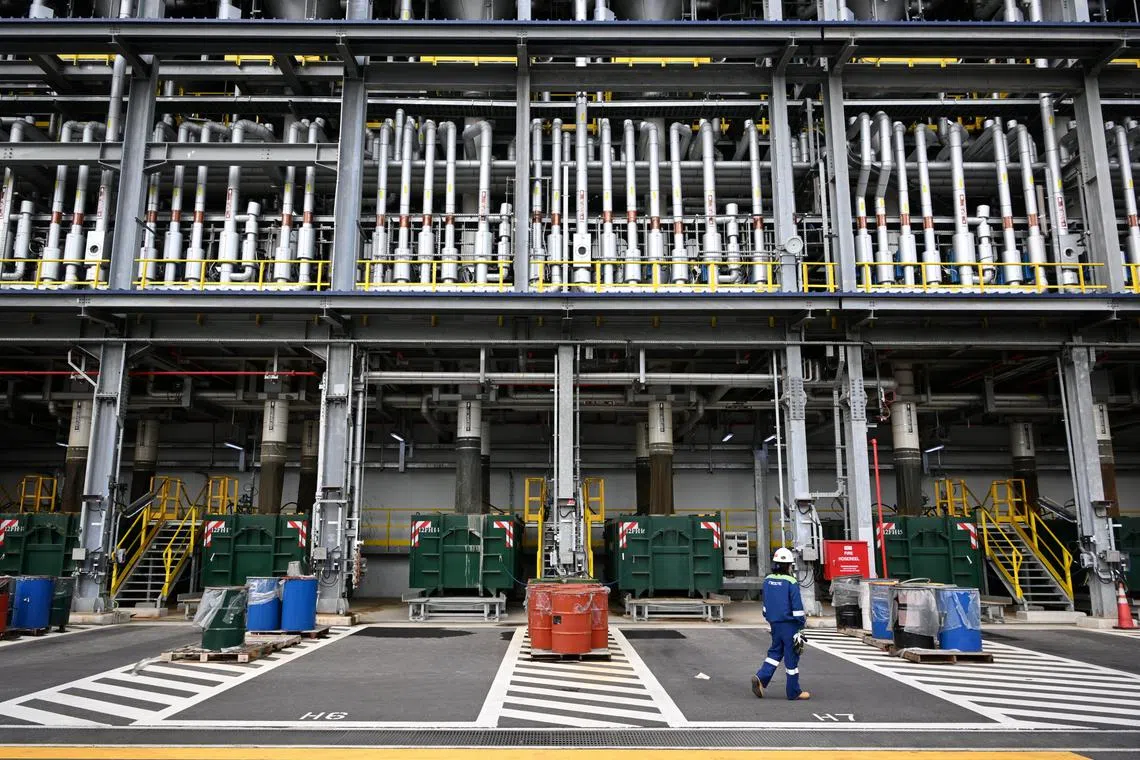 A pre-treatment facility at Finnish energy giant Neste’s expanded refinery in Tuas South, which was officially opened on May 17, 2023. The facility filters out and removes impurities from materials such as used cooking oil and waste animal fats that are used to make renewable fuels.
