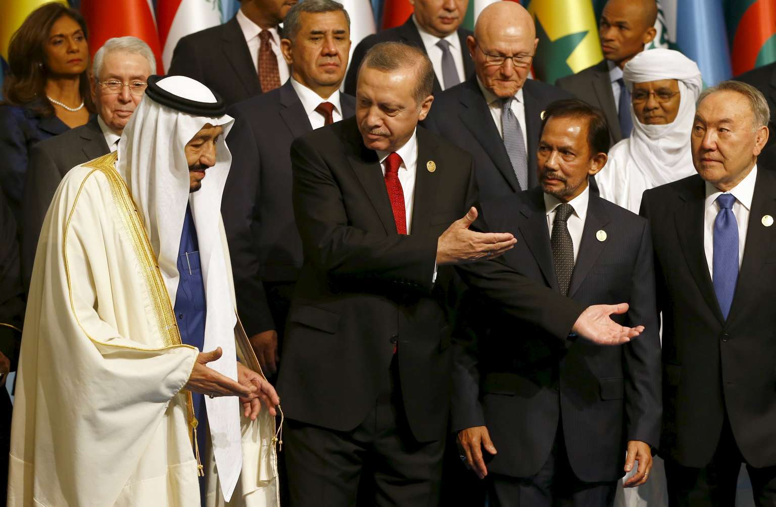 President Tayyip Erdogan (second from left) is seen with King Salman of Saudi Arabia (left), Sultan of Brunei Hassanal Bolkiah (second right), and Kazakhstan's President Nursultan Nazarbayev (right) at the Islamic Summit in Istanbul on Thursday.