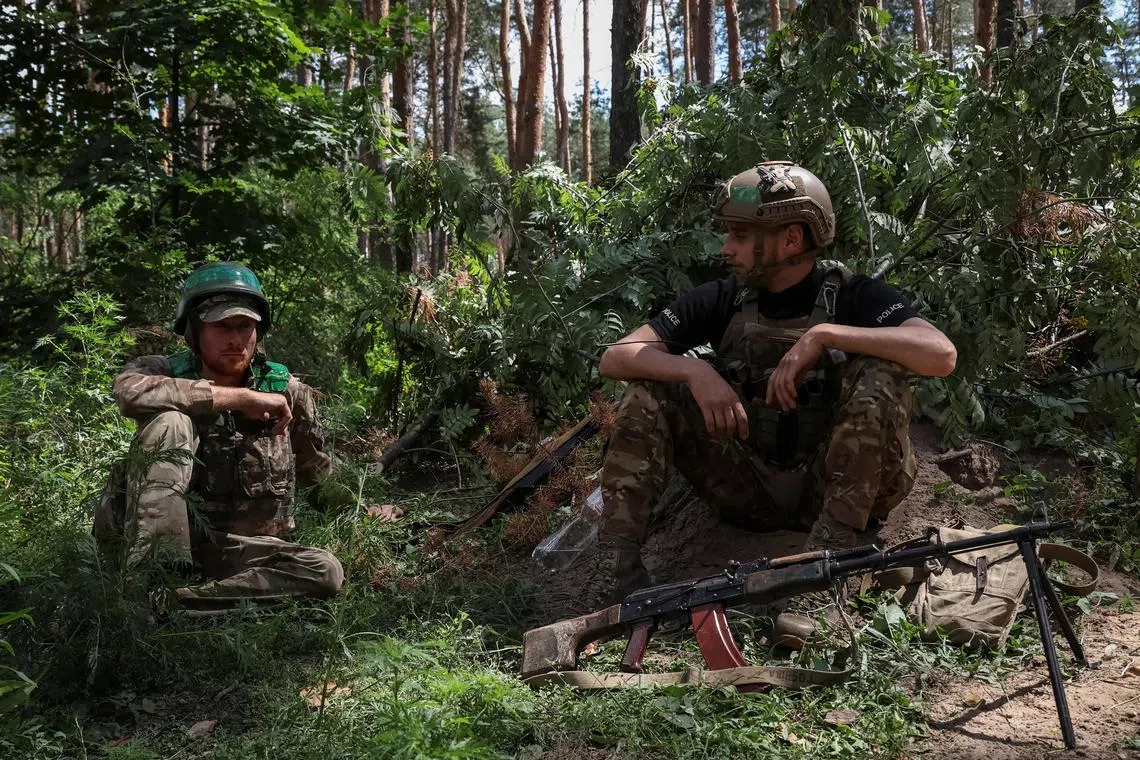 Ukrainian servicemen rest at their positions at a front line near the city of Kupiansk in the Kharkiv region of Ukraine on July 19, 2023.