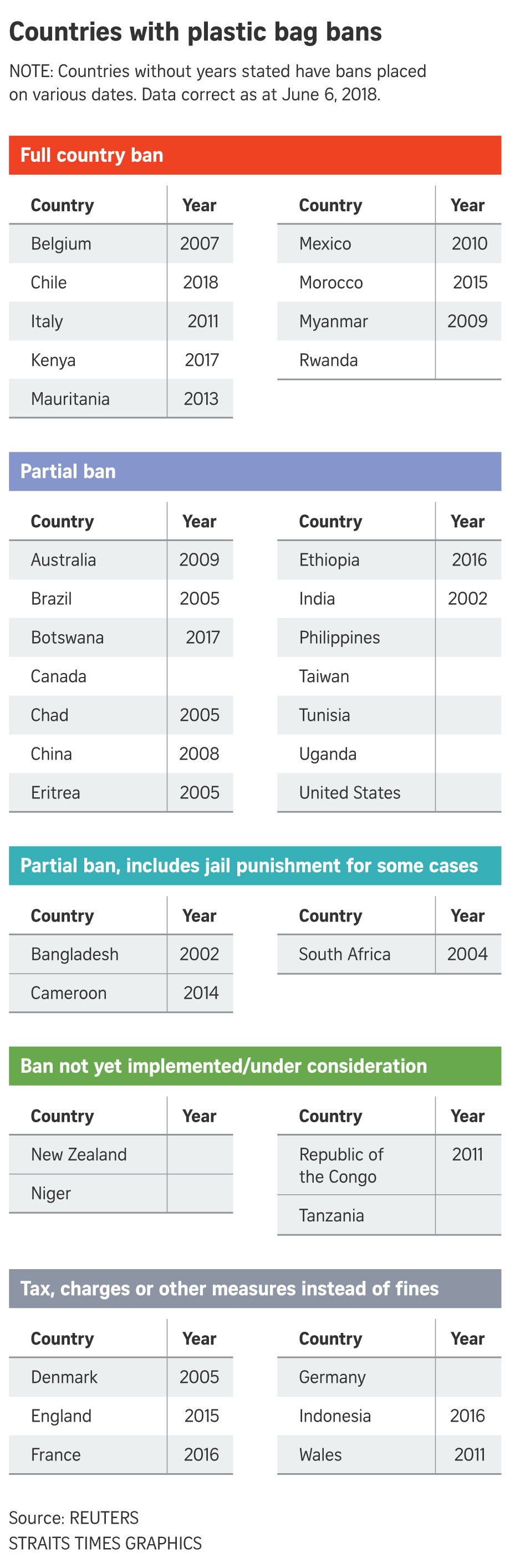 OSLO (REUTERS) - Less than a 10th of all the plastic ever made has been recycled, and governments should consider banning or taxing single-use bags or food containers to stem a tide of pollution, a UN report said on Tuesday (June 5), UN World Environment Day.