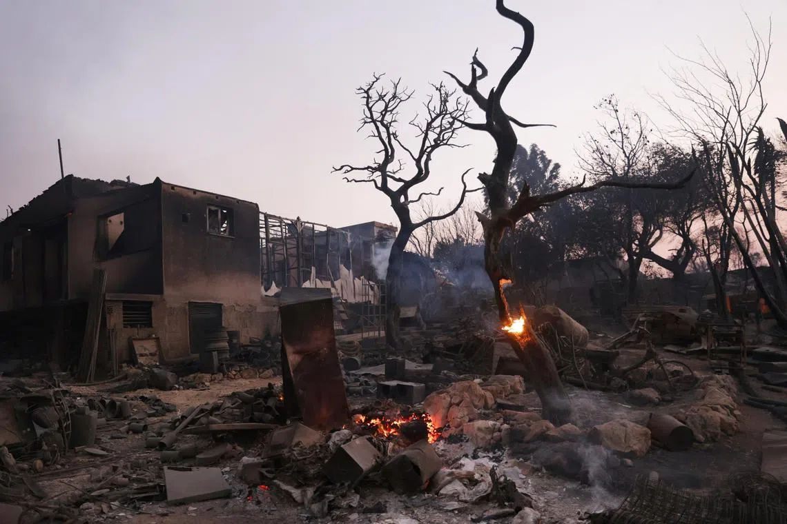 A burnt house is seen after a wildfire in Mandra, Greece.