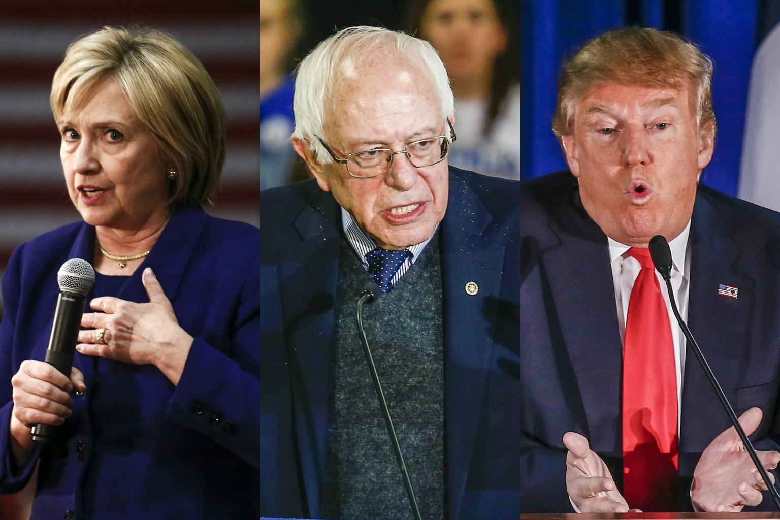 (From left) US presidential hopefuls Hillary Clinton, Bernie Sanders and Donald Trump.