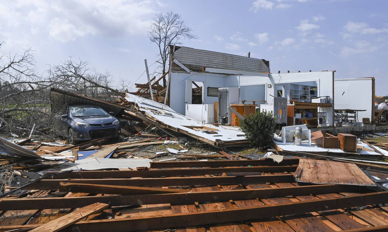 A church which was destroyed during a breakout of multiple tornados in Ohatchee, Alabama, on March 26, 2021.