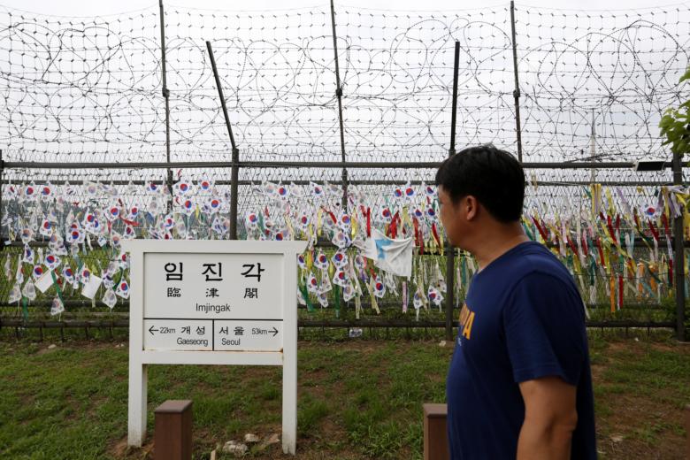 A man visits Imjingak park near the Demilitarised Zone in Paju, Gyeonggi-do, South Korea, on July 25 July 2018. Both South Korea and North Korea will celebrate the 65th anniversary of the 1953 signing of the armistice agreement that ended the Korean conflict.