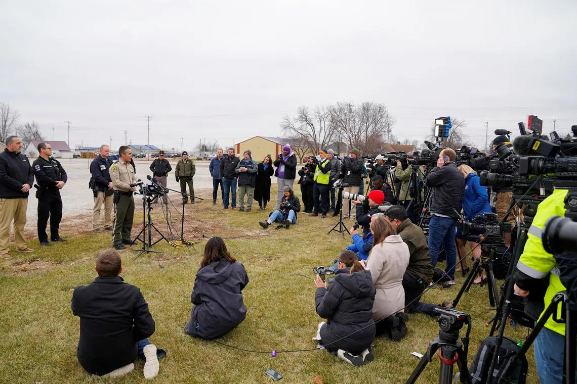 Law enforcement officers holding a press conference following the school shooting at the Perry Middle School and High School complex in Perry, Iowa, on Jan 4.