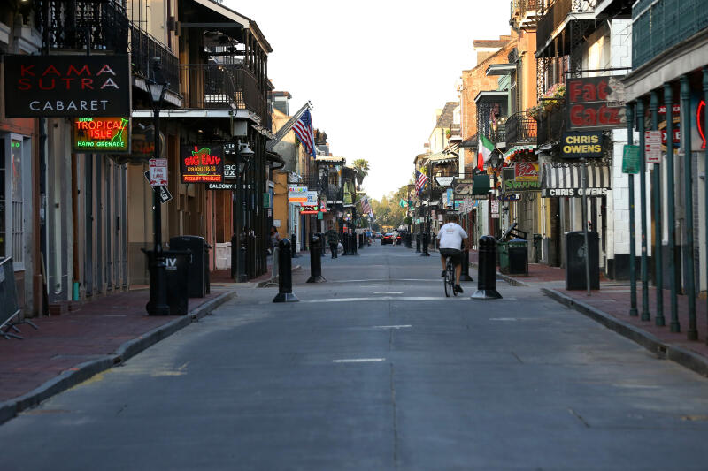 A view of Bourbon Street in New Orleans, on March 25, 2020. According to one study, Louisiana is experiencing the fastest growth in new cases in the world.