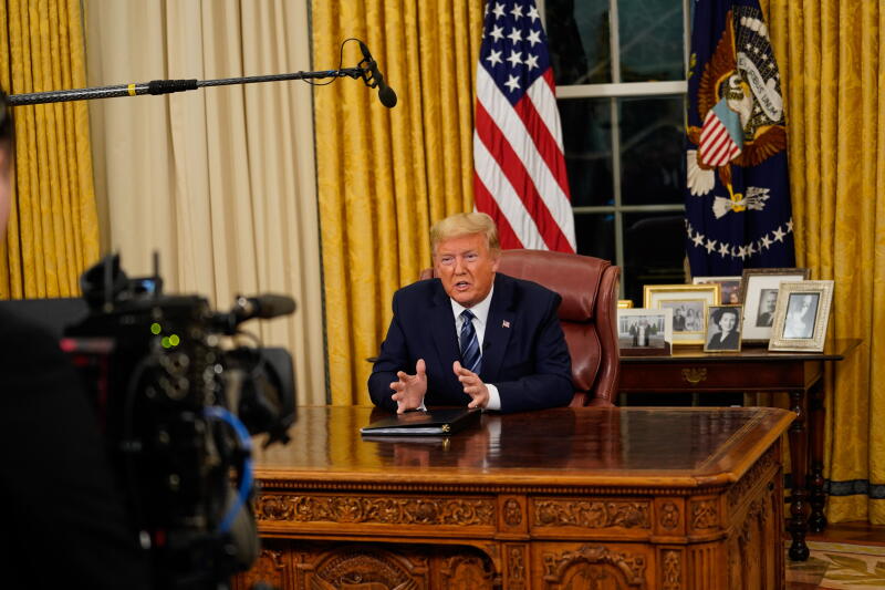 In an Oval Office address on Wednesday (March 11) night, he imposed a 30-day ban on travel from Europe to the US, claiming, without evidence, that the European Union's lax initial response had brought more cases of the virus across the Atlantic, with "a large number of new clusters" seeded by travellers from the Continent.
