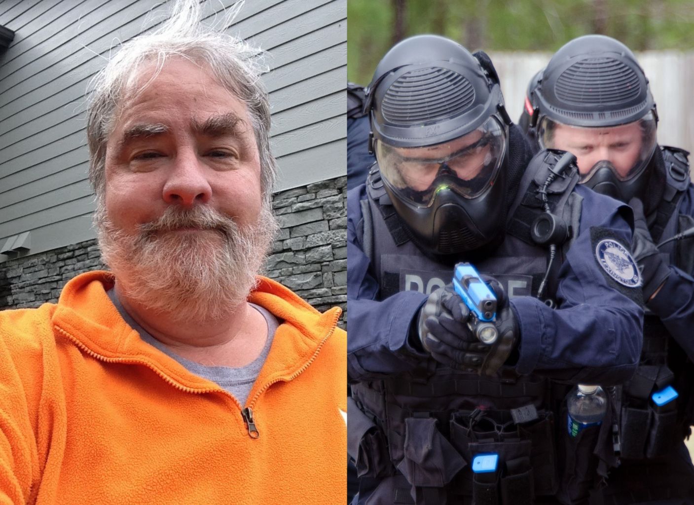 Mark Herring (left) died amid a "swatting", the act of reporting a fake crime in order to provoke a heavily armed response from the police (right).