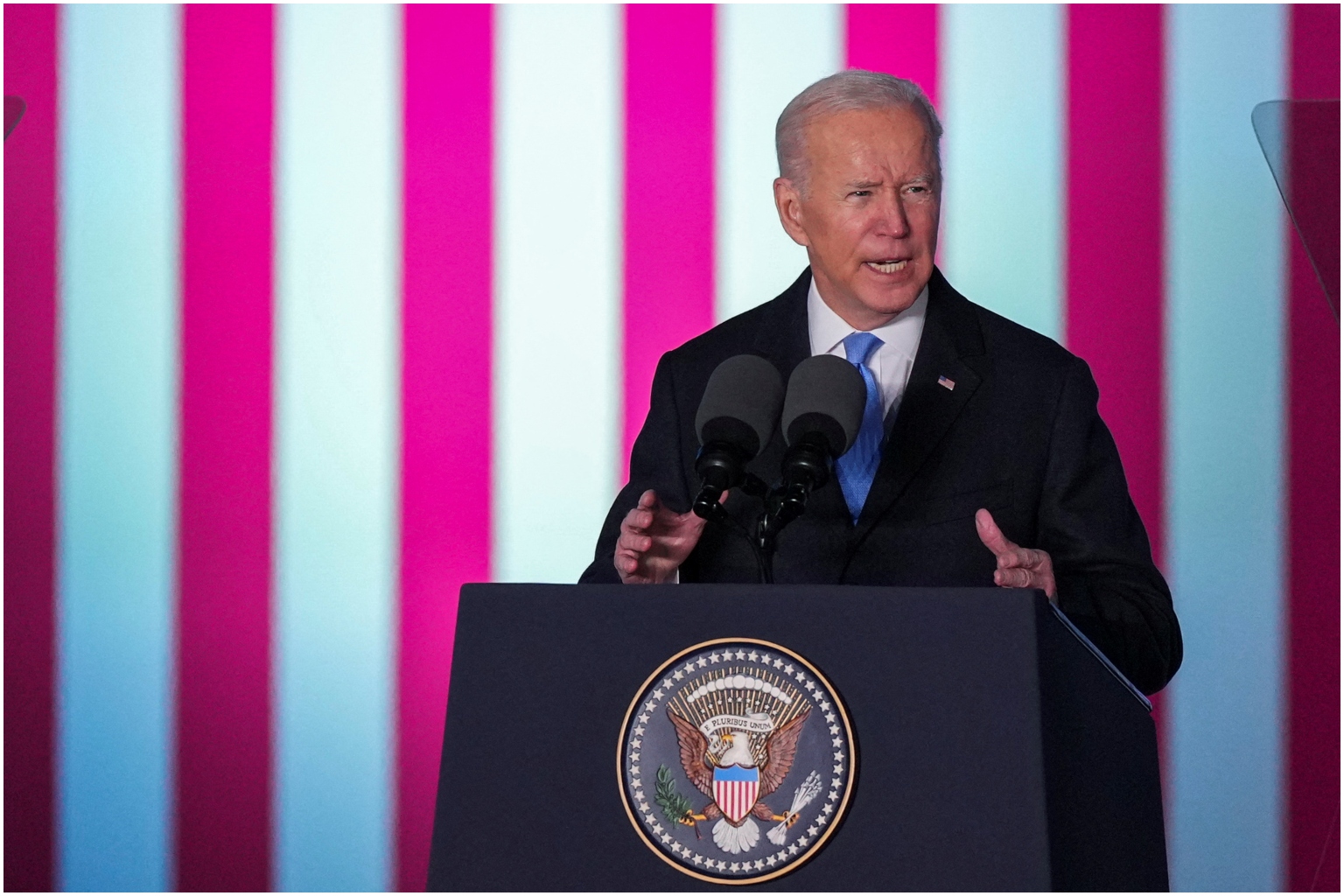 US President Joe Biden speaks during an event at the Royal Castle in Warsaw, Poland, on March 26, 2022.