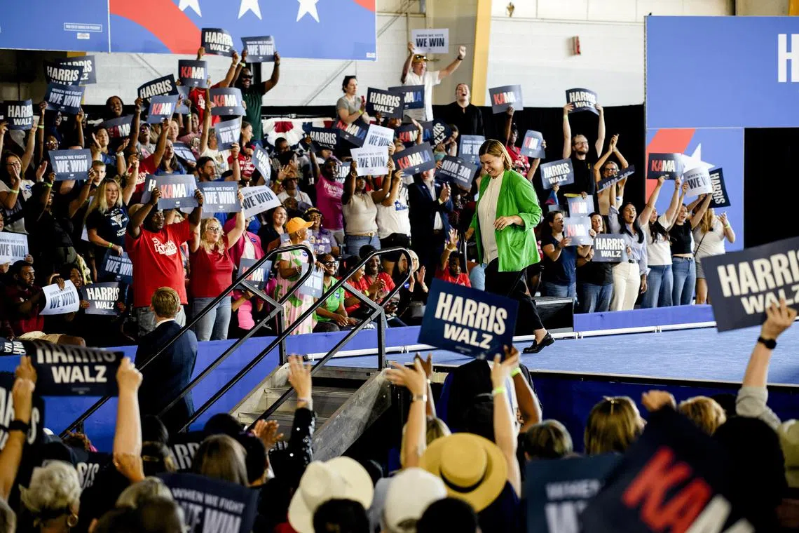 But not all is well with the Democratic brand, even if the Republican nominee, former president Donald Trump, is in a rough patch. Senator Jacky Rosen, who is in a tight re-election fight, appeared in Las Vegas with Ms Harris and Mr Walz on Aug 10, declaring of Ms Harris: “She has the grit. She has the determination. And she will win this race.”