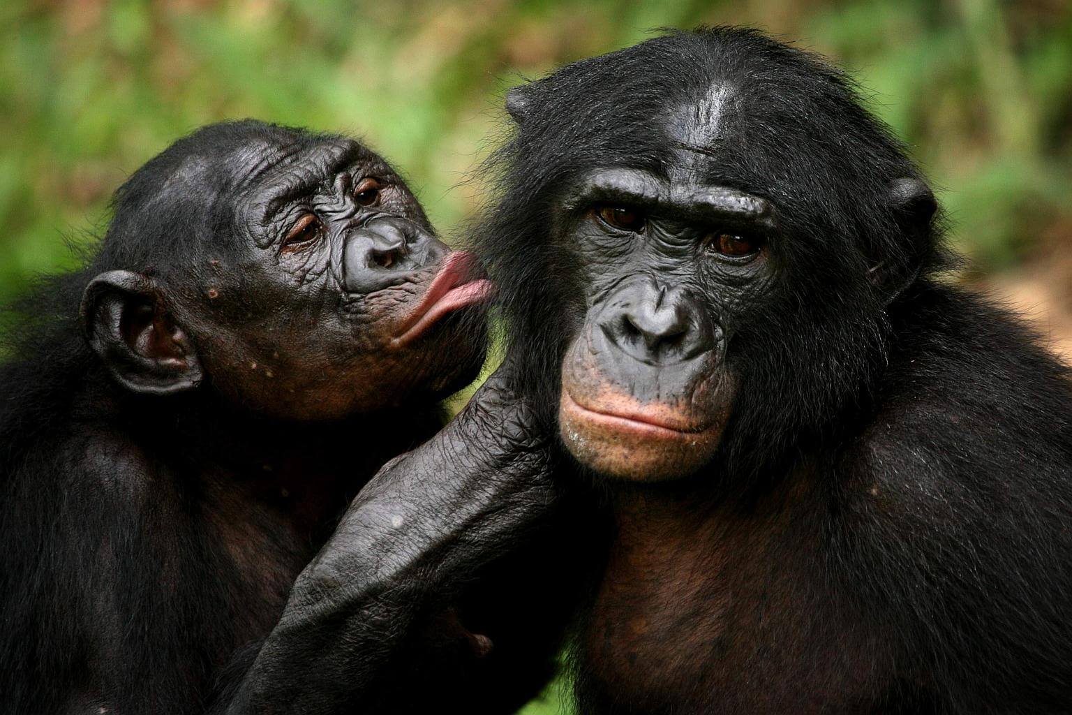 Just like elderly people holding newspapers at arm's length, ageing bonobos stand back to better spot insects and twigs on their friends.