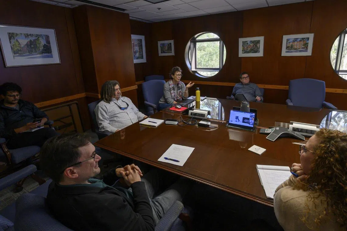 Faculty at the University of Florida in a meeting to discuss how to deal with ChatGPT, in Gainesville, on Jan 13, 2023.