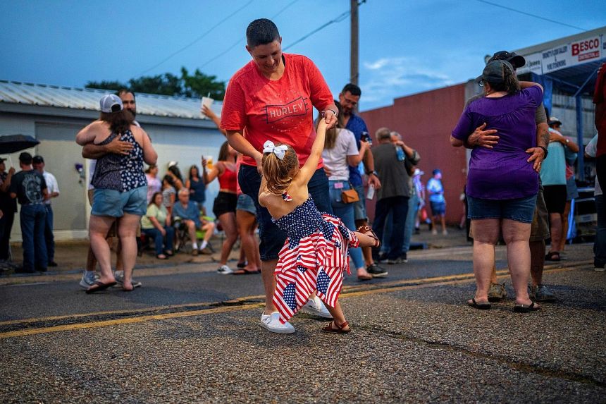 People dancing during Fourth of July weekend celebrations in Erath, Louisiana, on July 3, 2021.