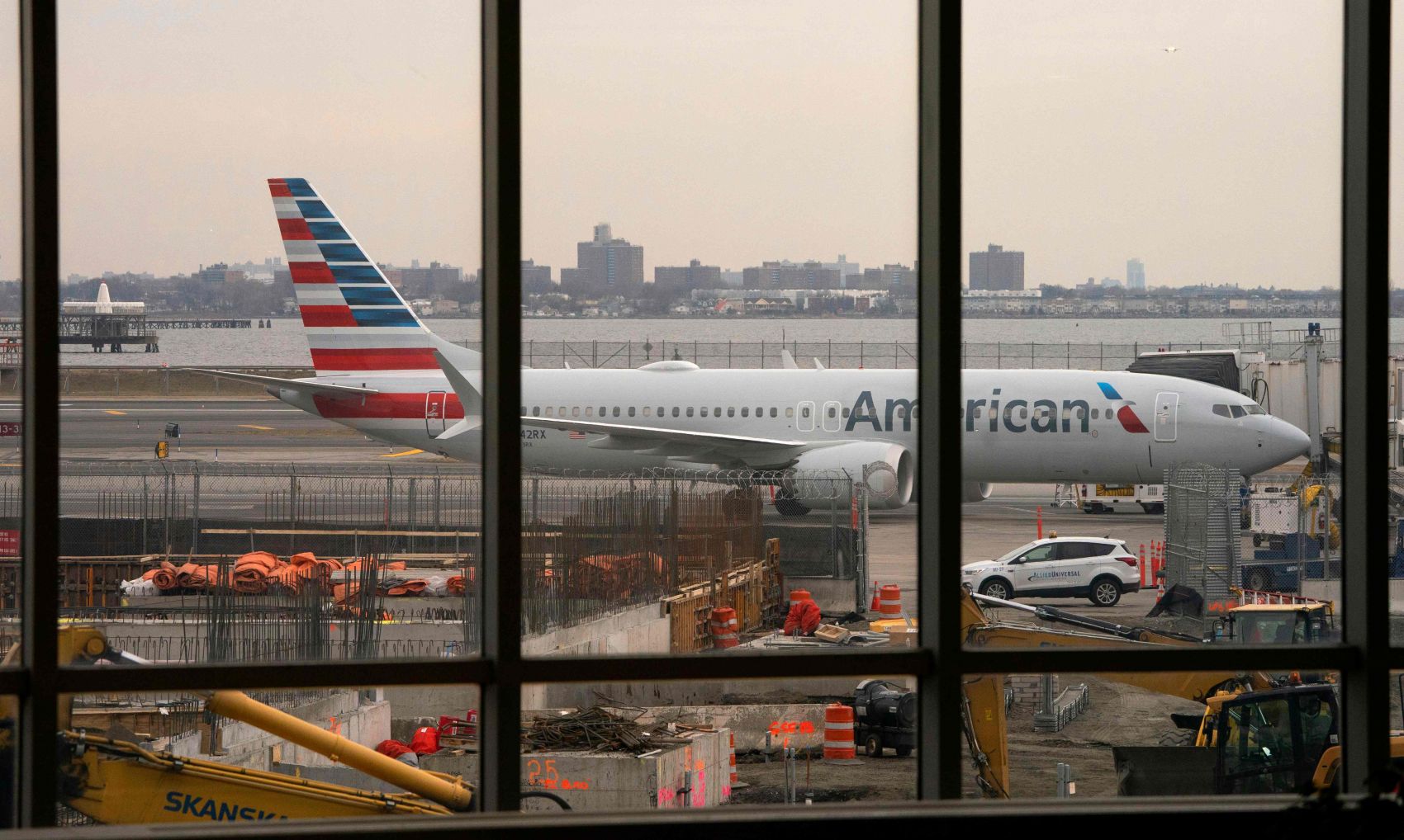 An American Airlines 737 Max sits at the gate at LaGuardia airport in New York.in March 2019.