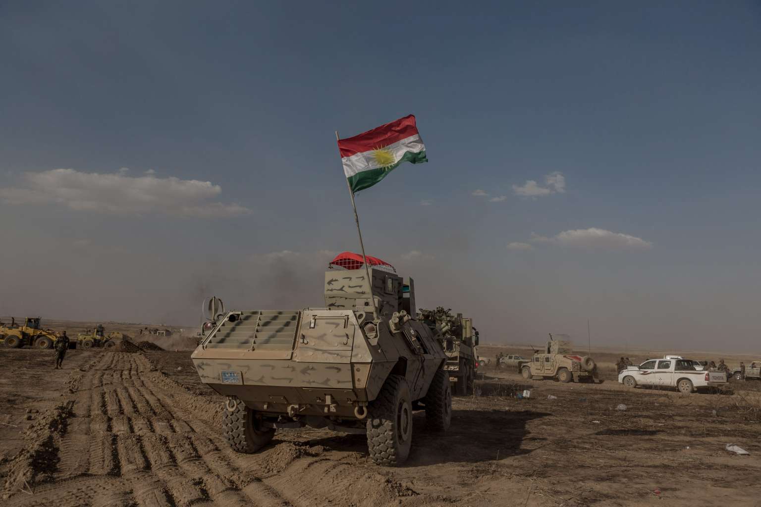 Kurdish Peshmerga forces moving in to Mufti village after it was recaptured from Islamic State, Kurdistan region, north Iraq, on May 29.