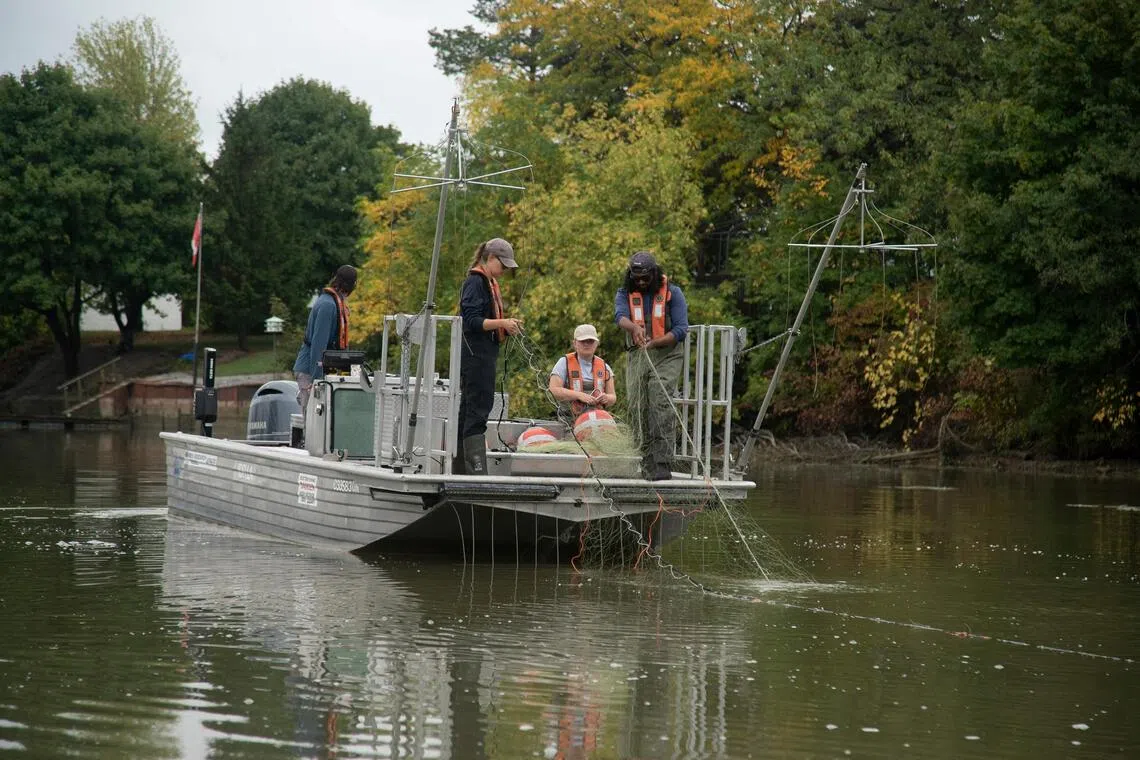 In the Grand River, Ms Tugade and senior biologist Alex Price oversaw an electrofishing mission.