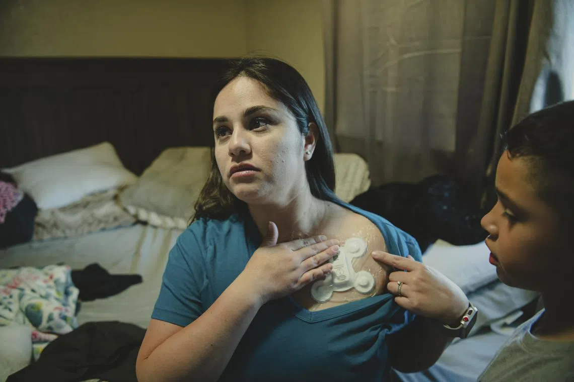 Unable to breathe, Ms Rodriguez required two months on ECMO. She developed a pneumothorax – air trapped between the lung and chest wall – on each side. The air needed to be drained to prevent lung collapse.