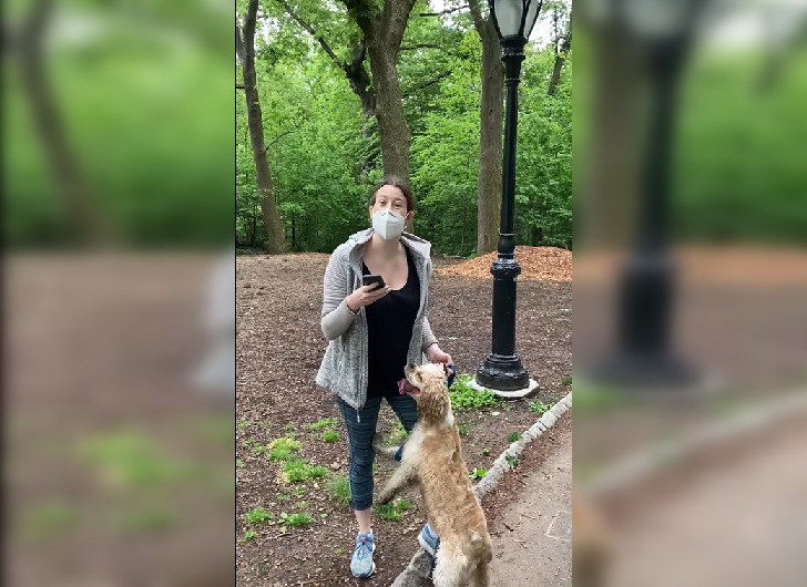 A screenshot of the woman from a video posted on Facebook by Christian Cooper.