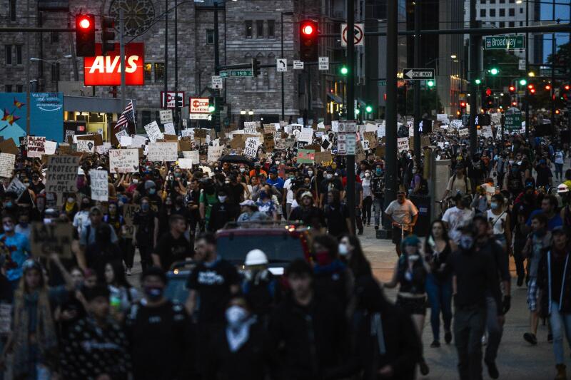 People in Denver, Colorado, on June 1, 2020, protesting against the death of George Floyd.