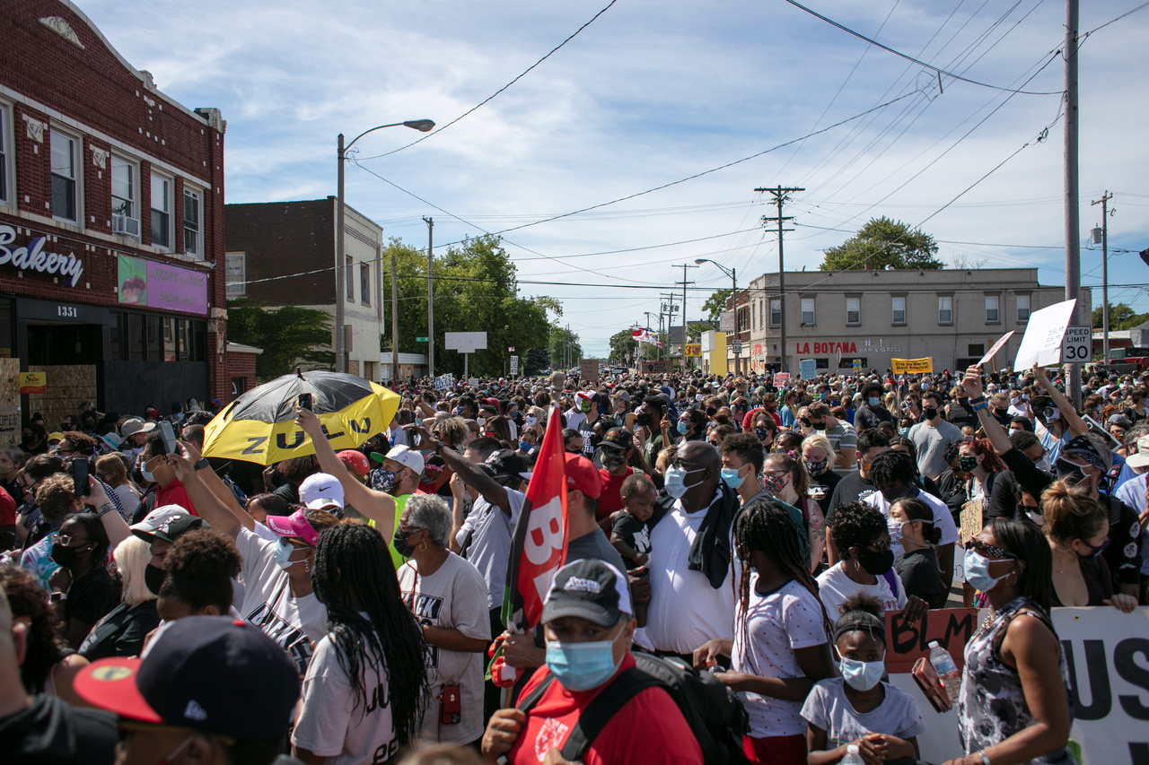 Protesters gather before the march towards the Kenosha County Courthouse, in Kenosha, Wisconsin, on Aug 29, 2020.