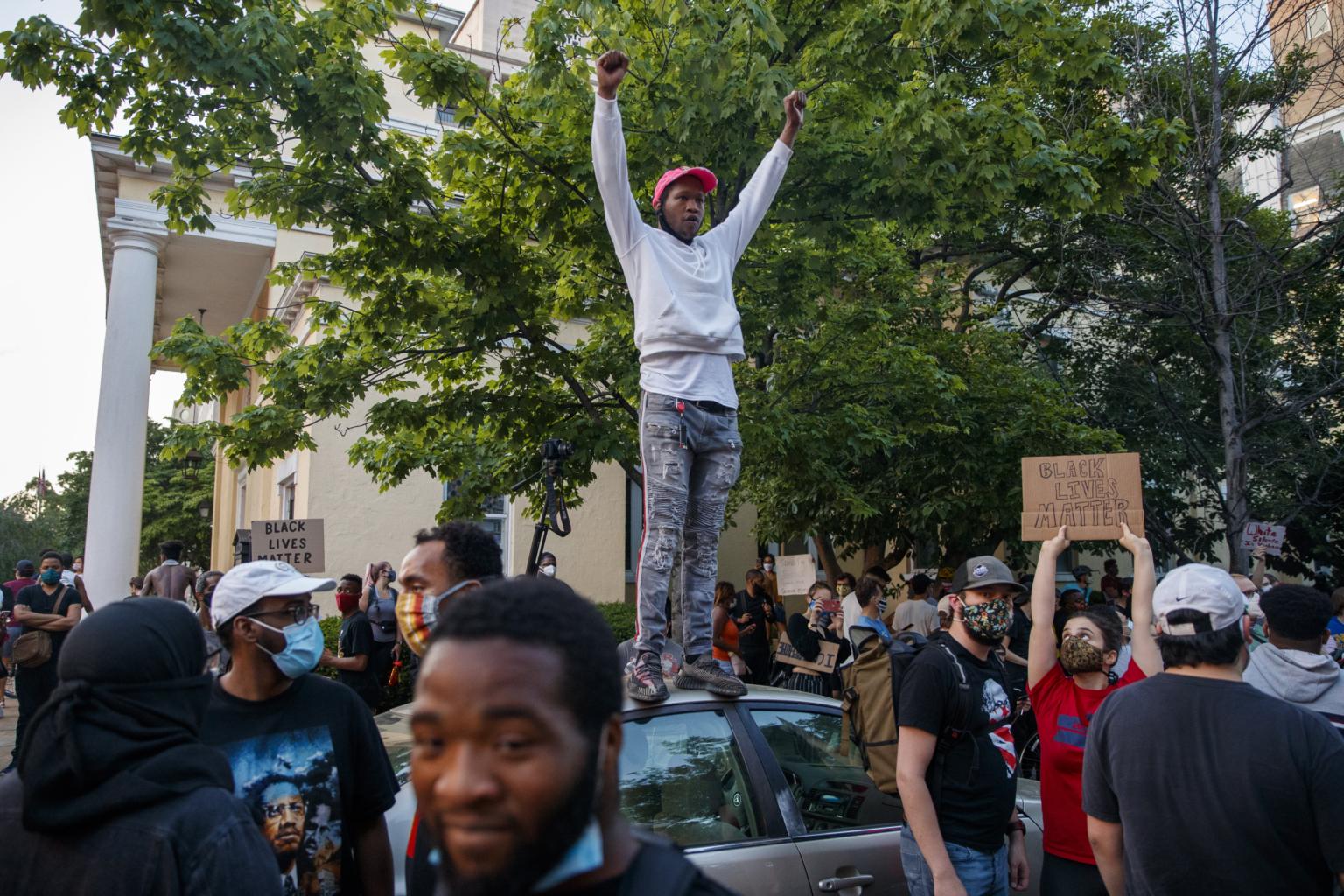 In Tennessee, the building that houses Nashville's City Hall was set on fire. Two police vans in New York City were filmed ploughing into protesters. In Washington, demonstrators set fires and smashed the windows of buildings near the White House.