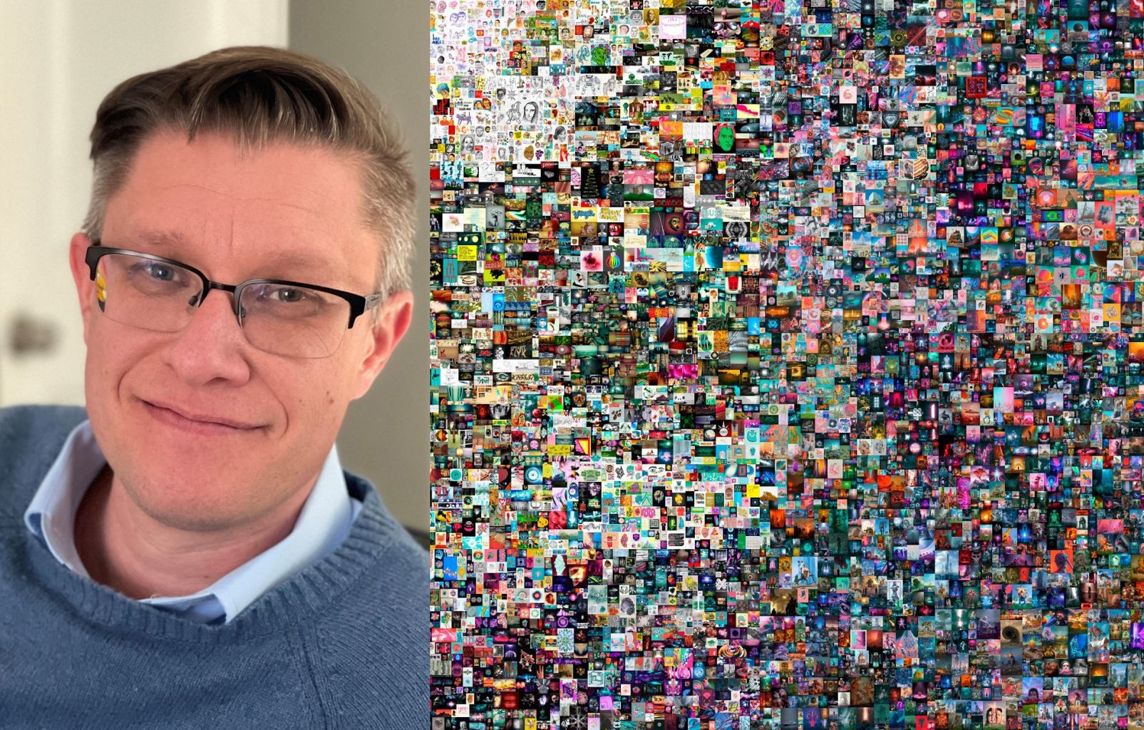 Artist Mike Winkelmann and his digital artwork "Everydays: The First 5,000 Days".
