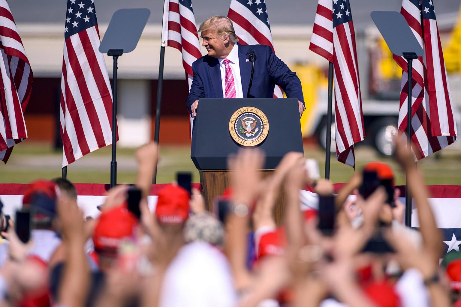 Mr Trump addressed a few thousand supporters at a tightly packed, in-person, outdoor rally in North Carolina, one of the battleground states in the Nov 3 election. He again said America was turning the corner in the fight against Covid-19 and mocked Mr Biden's more cautious campaigning style.