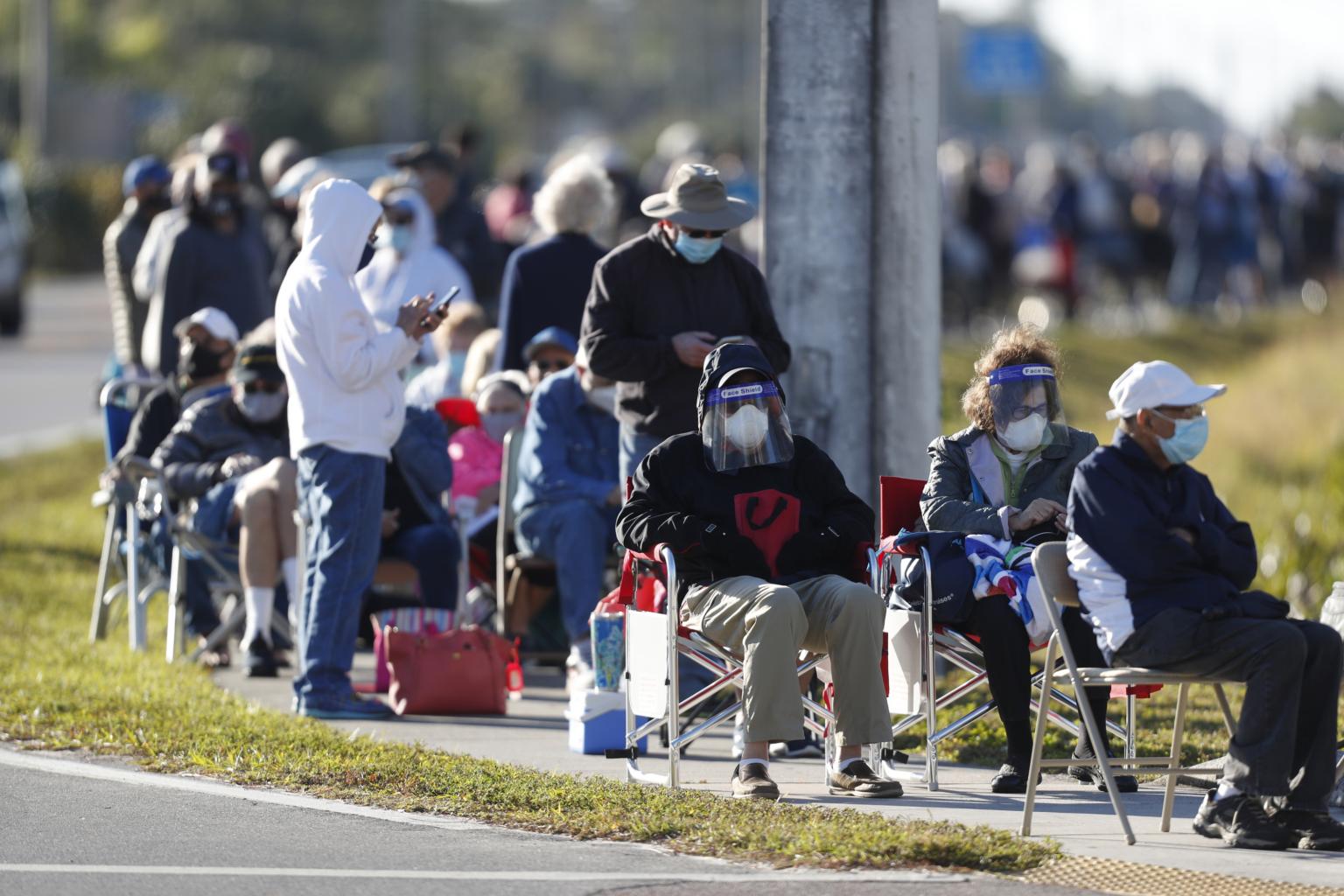 People wait in line for the Covid-19 vaccine in Lehigh Acres, Florida, on Dec 29, 2020.