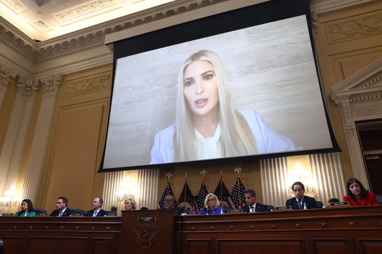 A video of Ivanka Trump testifying appears on a screen in Washington DC on June 9, 2022.