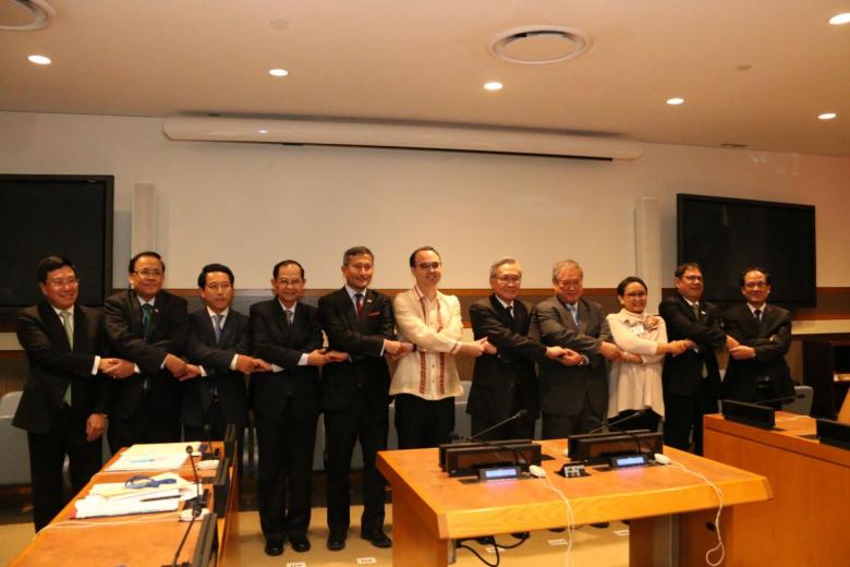 Minister for Foreign Affairs Vivian Balakrishnan (fifth from left) and the Asean Foreign Ministers on the sidelines of the 72nd Session of the UNGA.