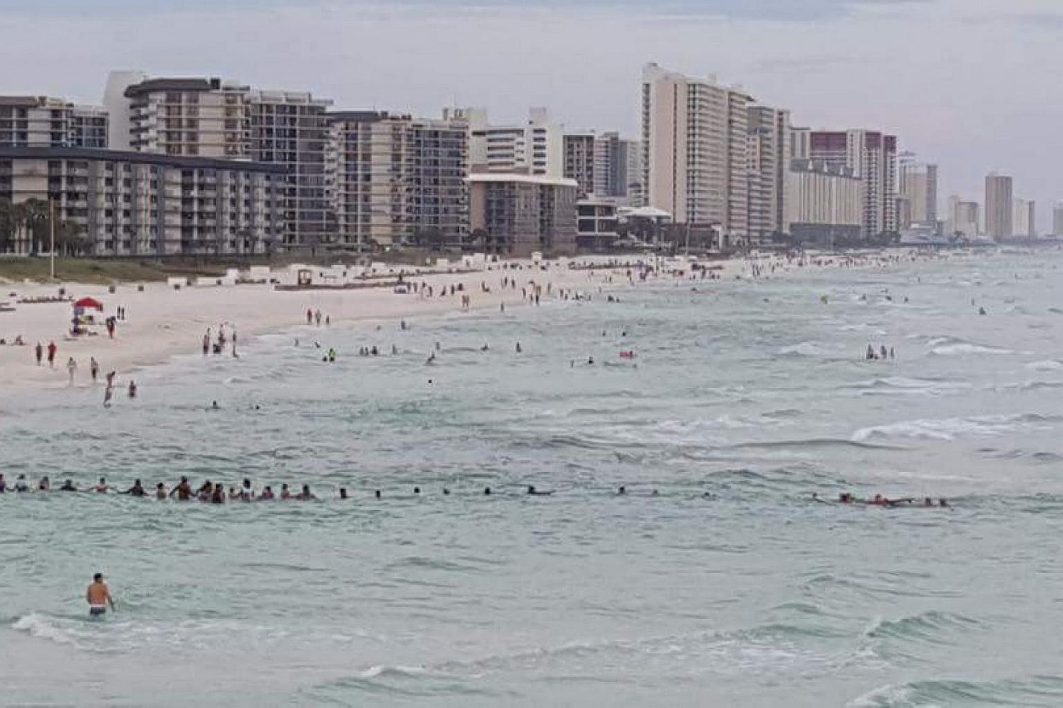 FLORIDA - Dozens of beachgoers formed a human chain at the Panama City beach on Saturday (July 8) to rescue a group of swimmers who had been pulled out to sea by strong tides.