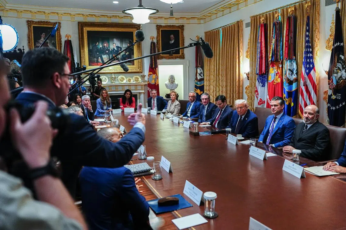 After the press were admitted to the White House Cabinet Room at 12.11pm local time (12.11am Singapore time on Aug 27), he gave a 45min opening monologue, including a brief interlude when he asked a reporter to give her account of being mugged in Washington, where he has launched a crime crackdown.