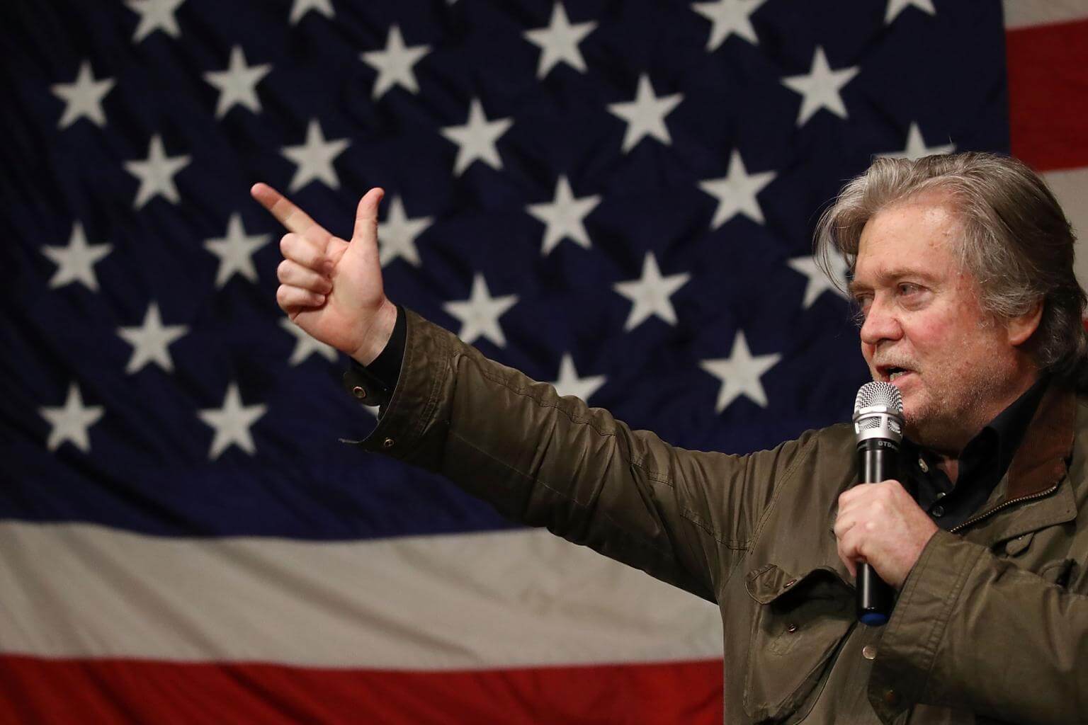 Steve Bannon speaking at a campaign event in Fairhope, Alabama on Dec 5, 2017.