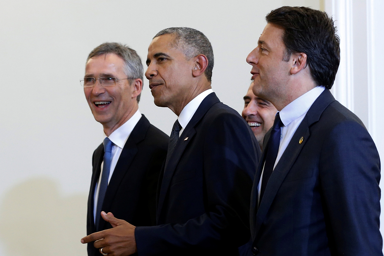 US President Barack Obama (centre) with Nato secretary-general Jens Stoltenberg (left) and Italian Prime Minister Matteo Renzi at the Presidential Palace in Warsaw, Poland.