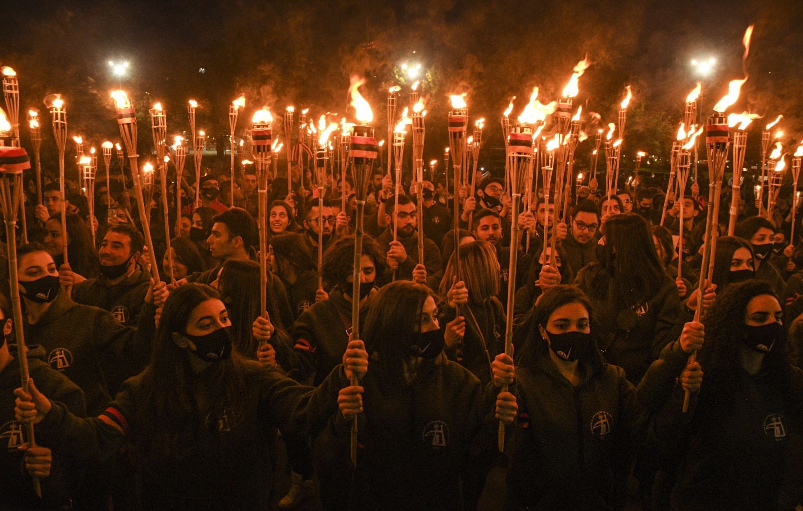 People take part in a traditional torchlight procession to mark the 106th anniversary of the mass killings of Armenians in the Ottoman Empire, in Yerevan, Armenia, on April 23, 2021.