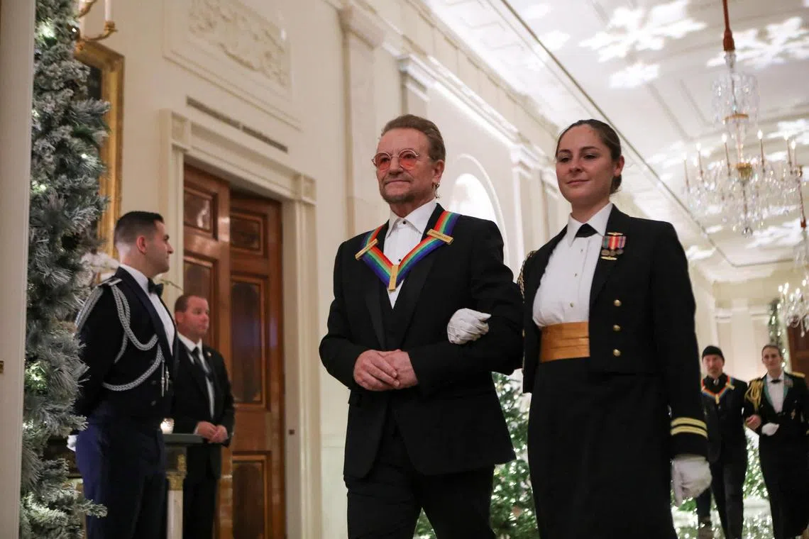 WASHINGTON – American President Joe Biden hosted a reception at the White House on Sunday night for the annual Kennedy Centre Honours, celebrating the work of artistes including the band U2, actor George Clooney, singers Amy Grant and Gladys Knight, and composer Tania Leon.