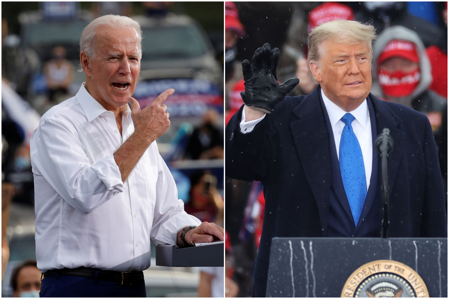 US Democratic presidential candidate Joe Biden in Atlanta and President Donald Trump in Michigan on Oct 27, 2020.