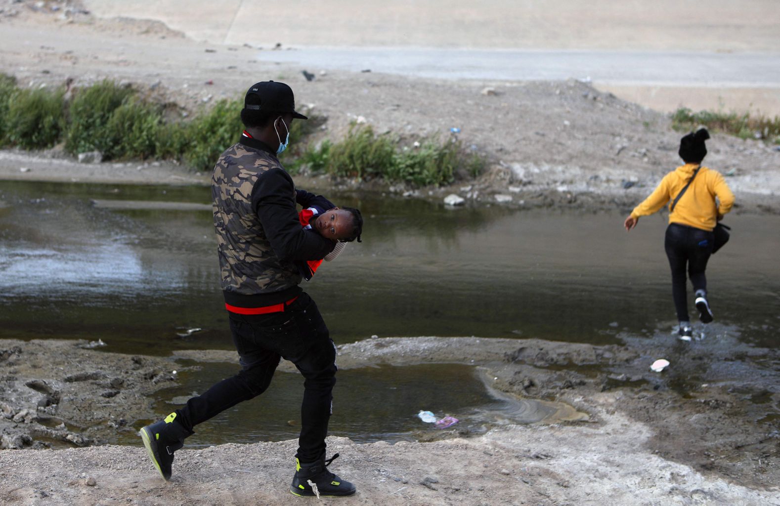 A Haitian migrant couple and their daughter cross the Rio Grande in an attempt to reach the US on April 15, 2021.