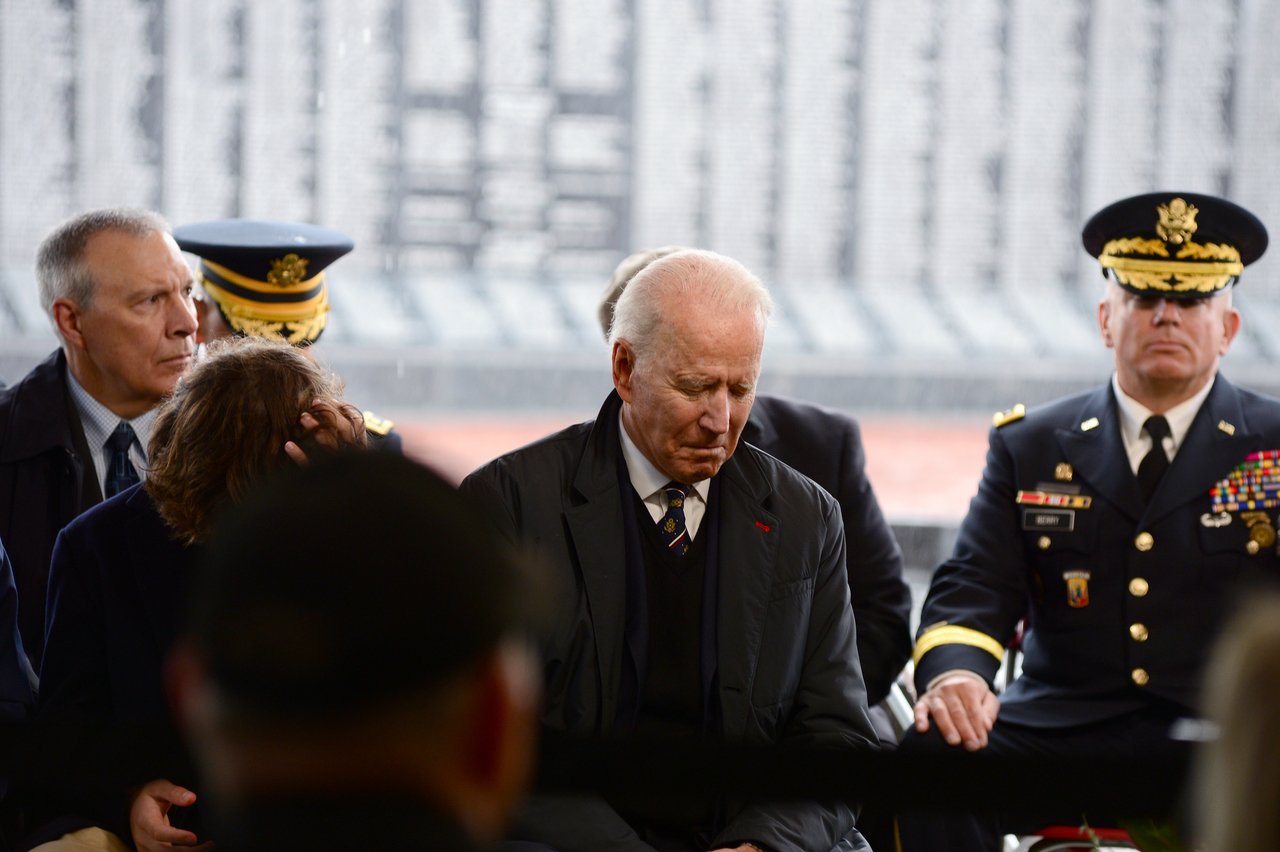 "We must remember the price that was paid for our liberties. We must remember the debt we owe those who have paid it, and the families left behind. My heart is torn in half by the grief," Mr Biden said.