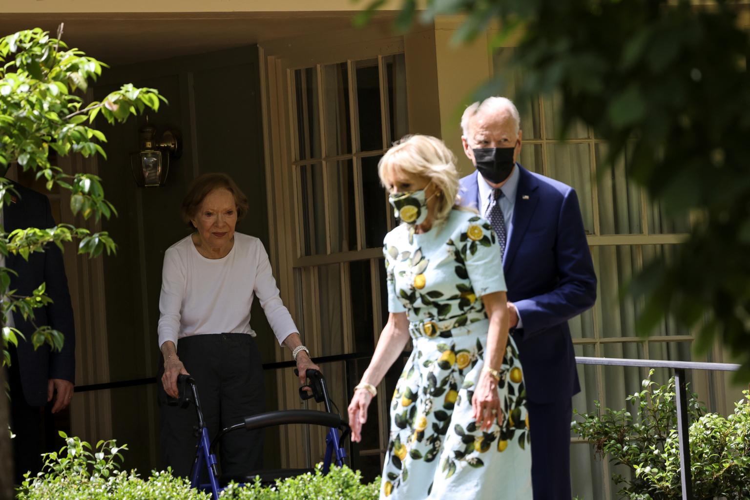 Former first lady Rosalynn Carter sees off Mr Joe Biden and Ms Jill Biden after they met with former President Jimmy Carter in Georgia, on April 29, 2021.
